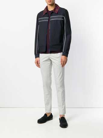 Для мужчин, готовых к экспериментам, можно посоветовать более смелые сочетания. К синим брюкам стоит подобрать тельняшку и короткий блейзер в цвет, бежевые штаны дополнит замшевая куртка в ретро-стиле, а к зауженным брюкам с отворотами вполне подойдет однотонное худи или толстовка.