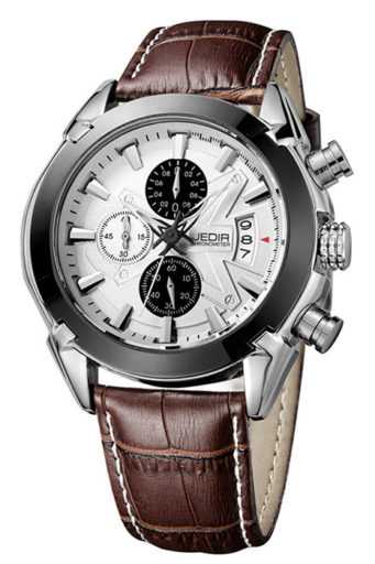 А такой вариант подойдет и для делового общения, и для занятий спортом, когда требуется четкое определение времени по хронографу. Эта удобная функция присутствует в представленных мужских часах: