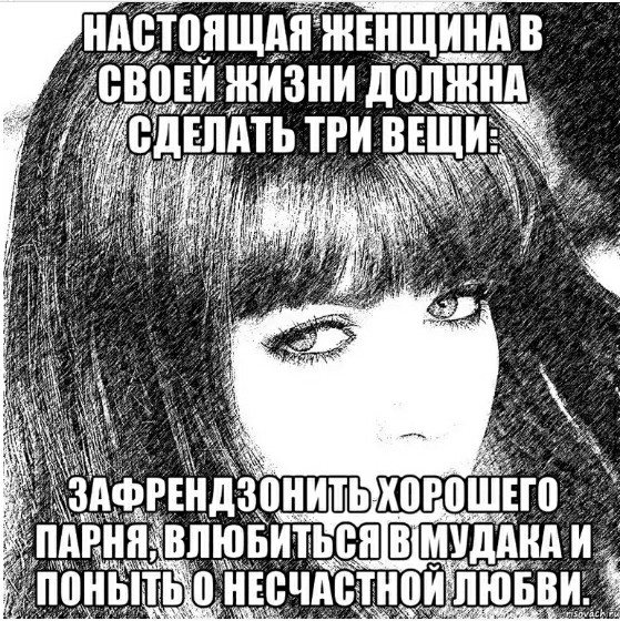 Ты помнишь, как в начале вашего знакомства ее глаза светились, стоило тебе предложить сходить куда-нибудь с твоими друзьями. Девушка считала их «замечательными людьми», наряжалась для встречи, шутила и смеялась, а когда вы возвращались домой, рассуждала, какой Кирюха в глубине души тонкий и чувствительный человек (хотя ты доподлинно знаешь, что Кирюха не такой).