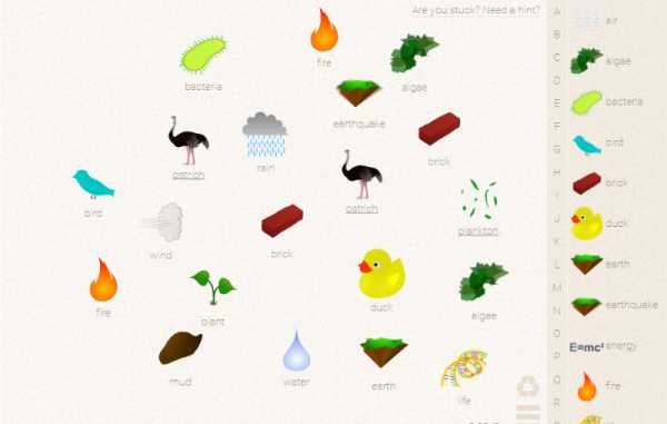 Сайт позволит вам всего лишь из четырех базовых элементов создать более пятисот новых предметов (учтите, игра затягивает). Включайте фантазию и вперед.