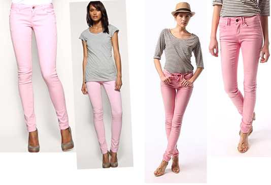 - Цветные джинсы лучше всего сочетать с обувью нейтральных цветов. Слишком яркая обувь в сочетании с такими штанами будет не к месту. Если обувь подобрать одного цвета с джинсами, то наверх лучше надеть белую футболку или футболку черного цвета, для того чтобы уравновесить цветовую палитру.