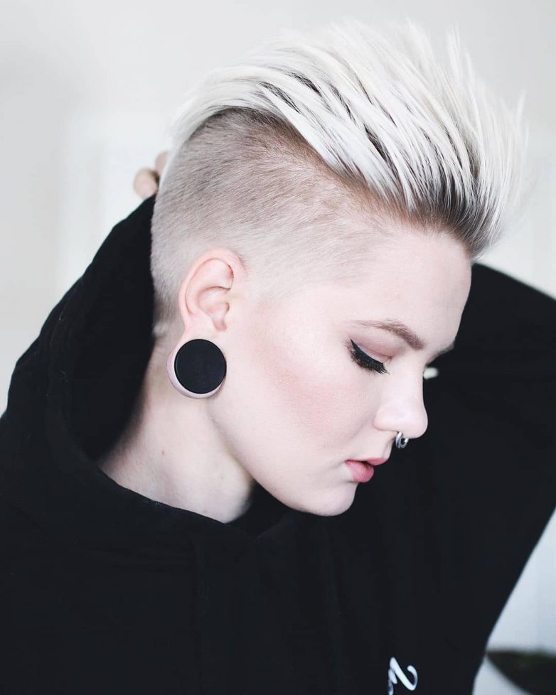 Вы можете приобрести вид дерзкой женщины или вид романтичной особы. Есть разные типы ирокезов, а именно: классический, готический, квифф, стрижка с единым выбритым виском.