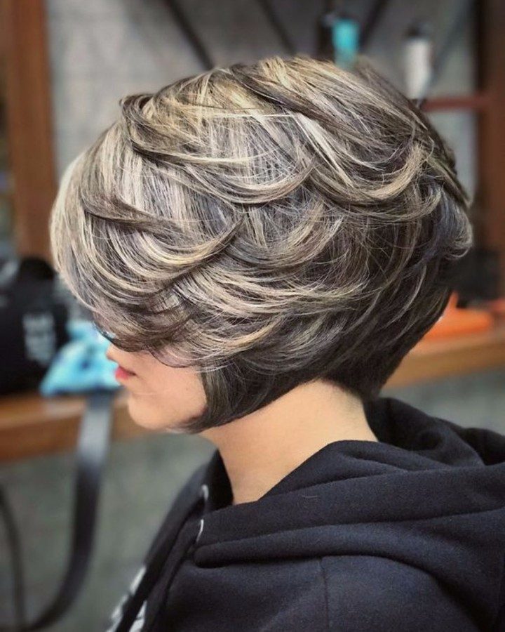 - Чаще всего волосы при этом окрашивают в иссиня-черный цвет. Но допускаются и разноцветные «перышки», мелирование. Увидеть на фото, как выглядят женские прически на короткие вьющиеся волосы, можно в данной статье.