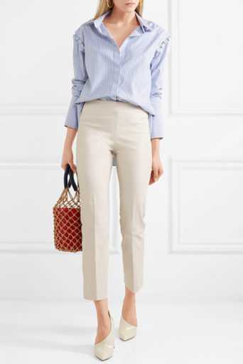 Брюки со стрелками делают ноги более длинными и стройными. Зауженные модели отлично сочетаются с рубашками и блузками. Также в качестве верхней части можно использовать различные топы и дополнять их жакетами.