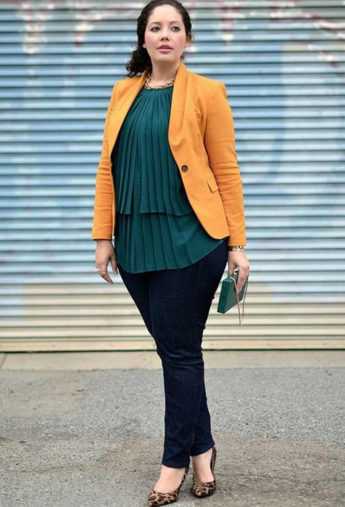 При этом важно учитывать, что завышенная линия талии подчеркивает верхнюю часть фигуры. Потому стоит отдавать предпочтение стандартной или чуть заниженной посадке. Верх должен быть максимально простым и лаконичным. Не стоит отдавать предпочтение объемным вещам.