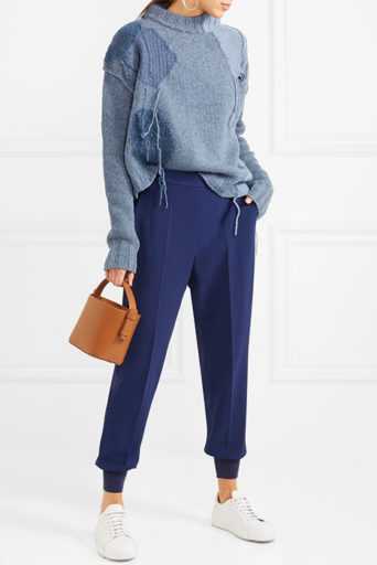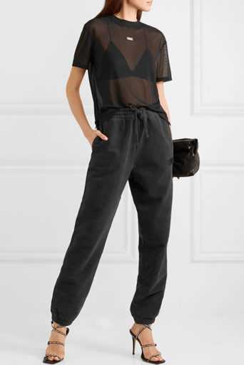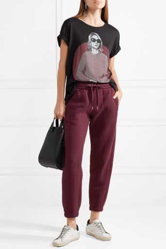 С зауженными брюками спортивного стиля следует носить соответствующую обувь — кроссовки, кеды, спортивные тапочки, и такой же верх – спортивный топ и ему подобные предметы гардероба.