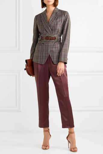 В качестве верхней одежды к зауженным брюкам можно подобрать слегка расклешённый плащ или тренч, длиной до колена или чуть выше.