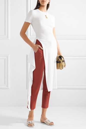 Идут: высоким девушкам, как стройным, там и полным. Вариантов сочетания великое множество: Jeremy Scott предлагает носить с укороченными худи и жакетами, Gucci показали сочетание палаццо с удлиненным пиджаком, а Alberta Ferretti сделали ставку на минималистичные лонгсливы и свитера.