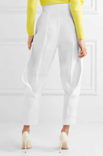 Лучше всего в такой ситуации выбрать зауженные брюки с минимальным объемом. Он поможет подчеркнуть бедра, но при этом скроет их истинный размер. Благодаря этому удастся выглядеть намного стройнее.