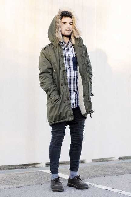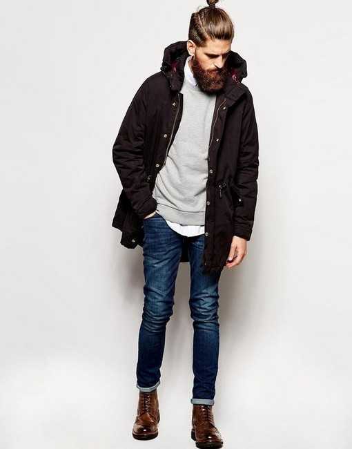 Данные куртки подойдут тем, кто любит свободный непринуждённый стиль, ценит комфорт и выбирает активный образ жизни. Для холодов выбирайте парки с мехом на капюшоне или воротнике. Актуальными цветами считаются цвет хаки, марсала, коричневый, синий и горчица. Замечательно сочетается с джинсами, чёрными брюками, свитерами и кардиганами крупной вязки, объёмными шарфами и вязанными шапками, утеплёнными кроссовками и кедами. Для придания образу «изюминки» подверните джинсы и наденьте высокие ботинки, как показано на фото.