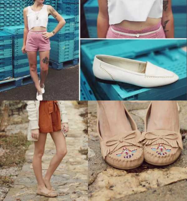 А вот с легким сарафаном из штапеля, создавая образы на каждый день, вполне можно надеть пару светлых туфелек со швами на лицевой стороне. Смело носите изящные модели этой комфортной обуви с романтическими платьями, расклешенными юбками, юбкой-тюльпаном. Подойдут широкие легкие брюки, а также шорты, бермуды, капри. Надевая ультракороткие шортики, подберите светлые туфельки, желательно под цвет кожи. Тот же совет можно дать, если вы надеваете юбку длины миди или брючки длиной 7/8.