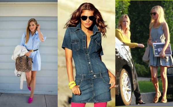 Универсальный деним хорош и в варианте платья. Мокасины прекрасно сочетаются как с джинсовым платьем-рубашкой свободного кроя, так и с приталенным платьем из джинсовой ткани в стиле 70-х годов. Если вы предпочитаете спортивный стиль, то выбирайте сарафан из денима прямого кроя. Он не только стройнит, в нём комфортно, потому что ткань не мнётся и не пачкается. Мокасины станут гармоничным дополнением наряда из джинсового материала. Платье смотрится женственно и в то же время просто, не вычурно. В нём можно пойти и на работу, и на учёбу, а мокасины станут ярким дополнением.