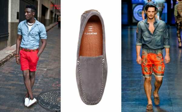 Пляжные шорты, яркие, пёстрые, свободного кроя, обычно носят с сандалиями или шлёпанцами, но и с мокасинами они выглядят не менее привлекательно, если дополнить наряд джинсовой рубашкой. Именно благодаря ей образ облагораживается, перестаёт быть простецким, обретает завершённость. Конечно, мокасины в данном случае носят с укороченными носками, чтобы создать эффект обуви на босу ногу. В отличие от городского образа, курортный вариант может быть гораздо ярче, и неоново-оранжевые шорты смело дополняйте белыми, жёлтыми или салатовыми мокасинами. В данном варианте приветствуется яркость и кричащие оттенки. Джинсовая рубашка уравновесит цветовой калейдоскоп и подчеркнёт отпускной настрой. Модные мужские головные уборы зима 2016-2017 Модные женские джинсовые куртки осень-зима 2016-2017 Что одеть на новый год 2017 Модные мини-юбки лето 2016 Женские бермуды Модные женские спортивные костюмы осень 2016