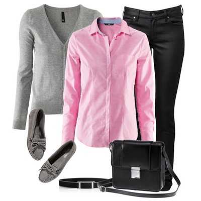 На работу подойдёт образ с кардиганом в тон, ведь мокасины неплохо смотрятся с приталенным брючным костюмом. Но длина брюк в данном случае не должна быть ниже выпирающей косточки на щиколотки, иначе обувь на низком ходу будет пачкать низ одежды. Юбка также не должна быть излишне длинной, не будет зазорным, если юбка откроет колени. Жакеты лучше носить укороченные и приталенные, потому что классические пиджаки длиной до середины бедра будут смотреться нелепо. Цвет мокасин должен совпадать с цветом одежды.