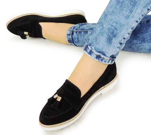 Будьте осторожны, надевая такие туфельки с джинсами-бойфрендами, ведь это обувь категории унисекс, а в тандеме с такими же брюками вы рискуете свести на нет всю свою женственность. Ошибочно полагать, что мокасины – спортивная обувь, со спортивными костюмами их не носят. Но стилевое направление спорт-кэжуал вполне допускает эти мягкие кожаные тапочки.