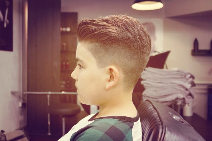 Одним из наиболее распространенных вариантов прически в этой возрастной категории стало укорачивание височных зон, слегка контрастирующее на фоне легкого удлинения прядок на макушке головы мальчика — очень аккуратно и одновременно стильно.