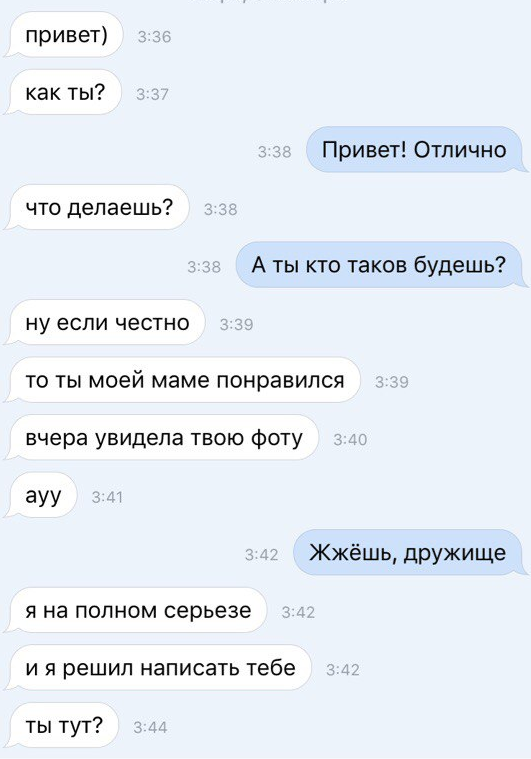 - Если ты сегодня отвечаешь только на 1 сообщение, пускай это будет мое.