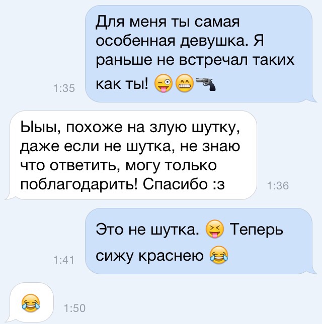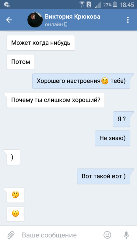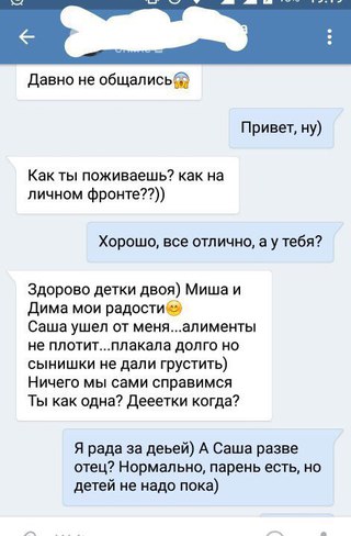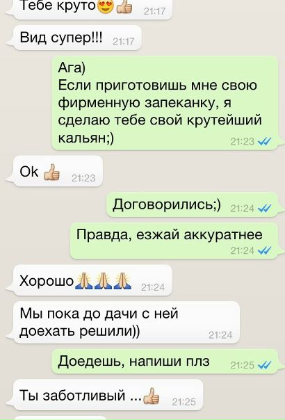 - А во-вторых, вы не настаиваете на разговоре, ведь сообщение закончилось на фразе «надеюсь, у тебя все хорошо». Она может ответить при желании, или же просто проигнорировать. Но обычно это работает так, что девушки отвечают на сообщения.