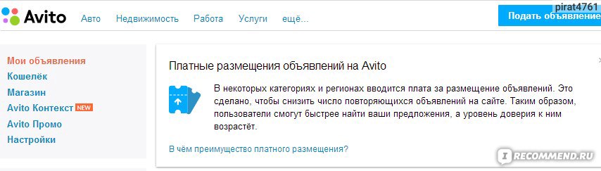 С августа 2015 года размещение объявлений о вакансиях на Avito стало платным во всех регионах. Это было сделано для сокращения числа повторяющихся, несуществующих вакансий и мошеннических объявлений. Плата определяется для каждого региона и формируется, по словам специалистов Avito, на основании благосостояния региона.