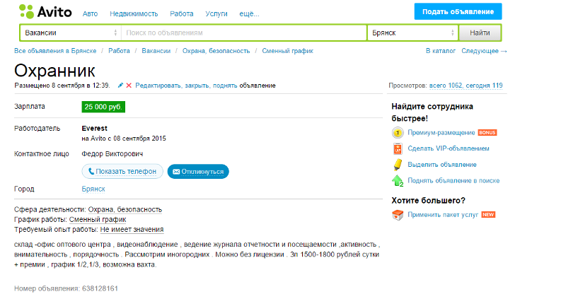 Очень важно не ошибиться с видом деятельности, названием должности, и, конечно же, с названием. Помните, что аббревиатуры и сокращения в описании употреблять нельзя. Большим плюсом вашего объявления будет прикрепление фотографии к нему (в качестве изображения можно указывать только логотип фирмы, все остальные будут отклонены).