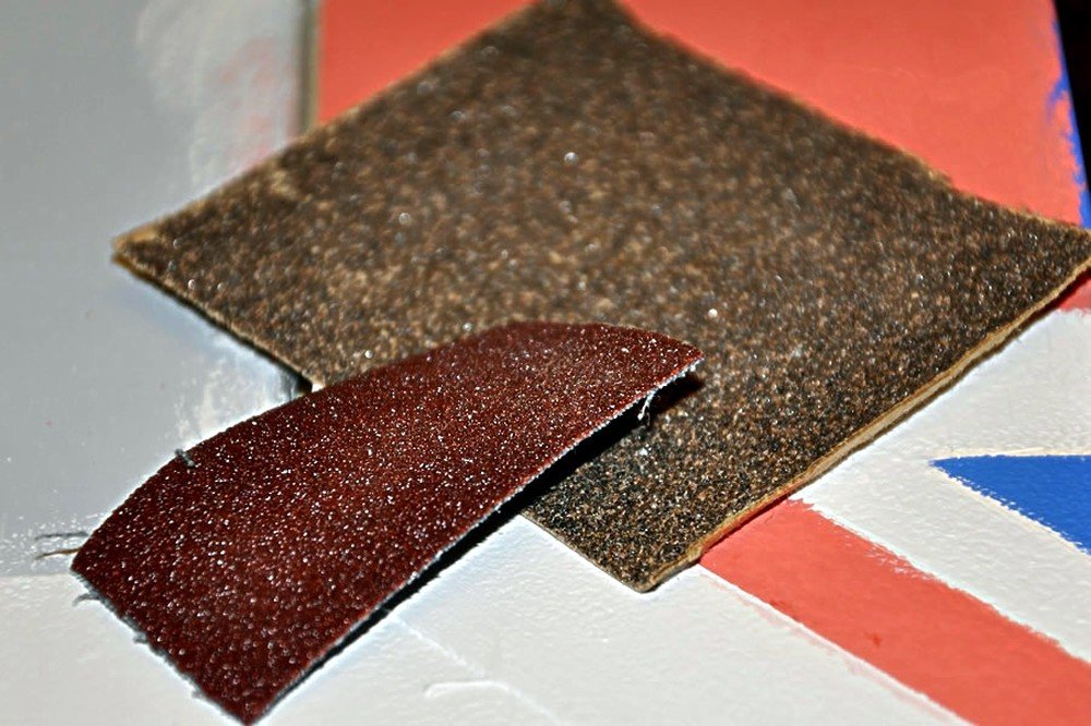 Через 5-10 минут аккуратно убирают липкий кусочек. Место затирают водой с уксусом, пройдясь наждачкой.