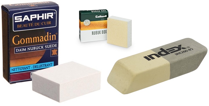- Ластик. Существует специальный ластик для очистки ботинок из замши от пыли и грязи. Для этого нужно потереть область, на которой находятся загрязнения. Купить такое приспособление можно в магазинах обуви или использовать обычный школьный ластик.
