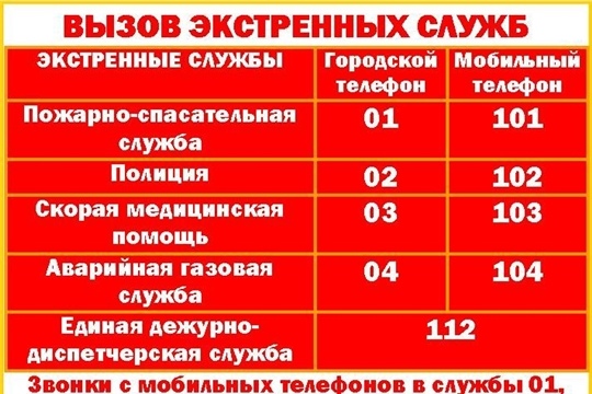 Единый номер пожарных и спасателей: 01