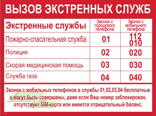 Помните! Вызов экстренных служб бесплатен.