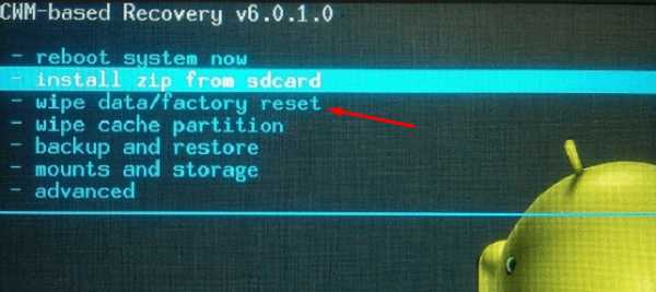 - Нужно выбрать – wipe_data/factory_reset и нажать на кнопку подтверждения, соглашаясь с изменениями.