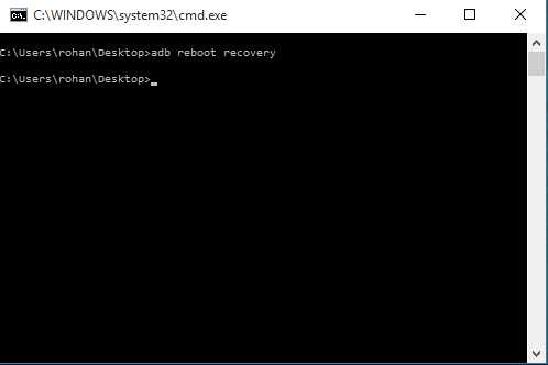 - Включаем на компьютере командную строку и прописываем в ней следующее: adb reboot recovery.