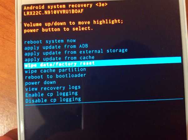 Вводим устройство в Recovery Mode - Как только вам удастся войти в меню восстановления, выберите пункт wipe data/factory reset и подтвердите сброс. Движение осуществляется с помощью кнопок регулирования громкости, а выбор — через кнопку «Домой» и «Вызов меню».