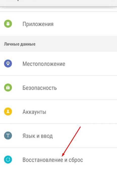 - Находясь в настройках устройства, выберите блок «Восстановление и сброс».