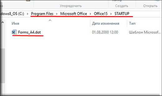 Например, если вам понадобятся рамки по ГОСТу, то вы можете скачать их отсюда. Когда архив скачается, то распакуйте его. Там вы увидите файл Forms_A4.dot. Это и будет шаблон рамки. Но не спешите его открывать просто так. Скопируйте его в папку, где у вас установлен офис в папку STARTUP. Вот теперь вы всё установили.