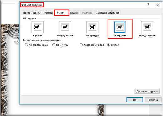 Да, и еще не забудьте нажать правую кнопку мыши на этой рамочке и выбрать «Формат рисунка», после переходим во вкладку «Макет», а затем ставим «За текстом». Ну и теперь вы сможете писать что угодно внутри этой рамки, а также двигать ее, как вам покажется удобным.