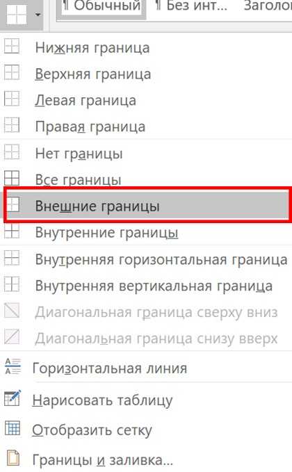 3 Выберите тип рамки, которую вы хотите использовать. Например, Внешние границы.