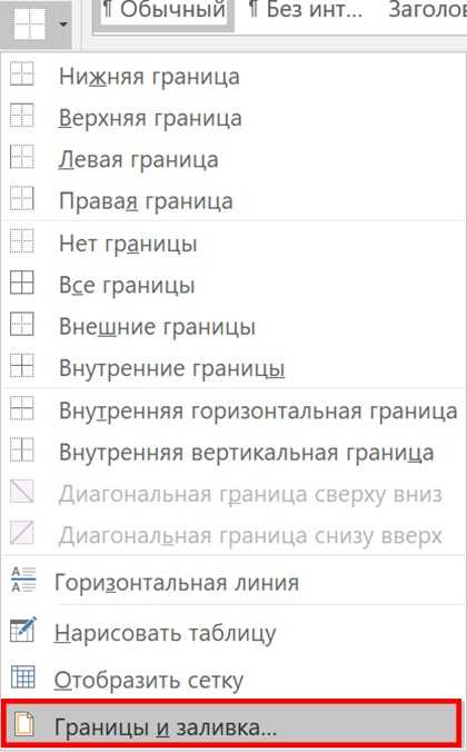 4 Если вам нужно больше параметров, чем показано (например, вы хотите сделать более толстую рамку, либо пунктирную и т.д.), щелкните Границы –> Границы и заливка. В открывшемся окне вы можете выбрать свой вариант.