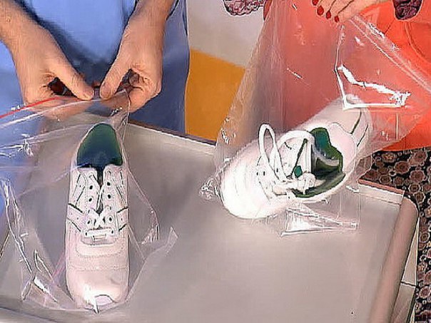 Наиболее эффективной дезинфекцией является заморозка, ведь микробы гибнут при низких температурах. Чтобы провести её, достаточно поместить кроссовки в бумажный пакет и положить в морозилку на сутки. По истечению срока вынуть обувь и дать ей прогреться.