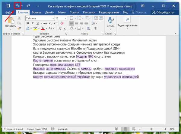 Примечание! В случае случайного удаления напечатанного текста, не переживайте и нажмите на клавиатуре комбинацию клавиш «Ctrl+Z» или на стрелочку в редакторе в левом верхнем углу рядом с дискетой. После этого действия текст вернётся полностью, а пустая страница будет удалена.