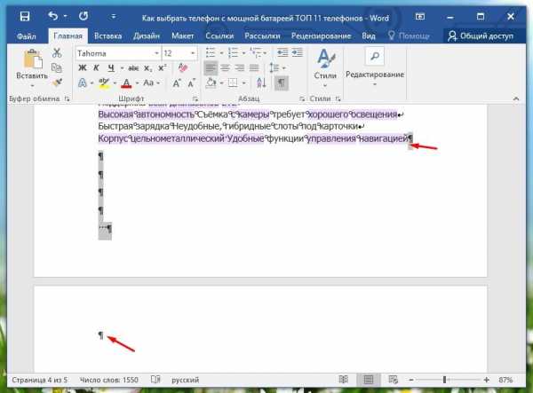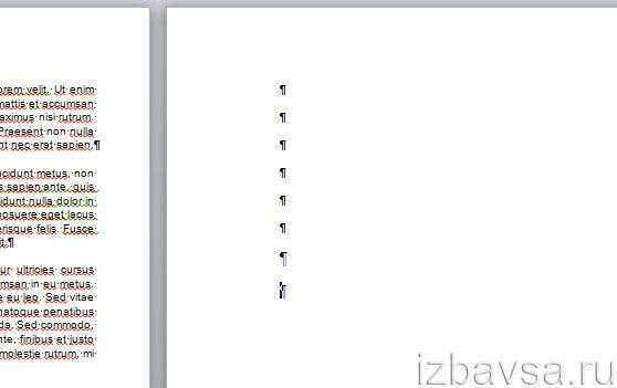 2. Так, если в конце, как и в середине вашего текстового документа есть пустые абзацы, а то и целые страницы, вы это увидите — в начале каждой пустой строчки будет расположен символ «¶».