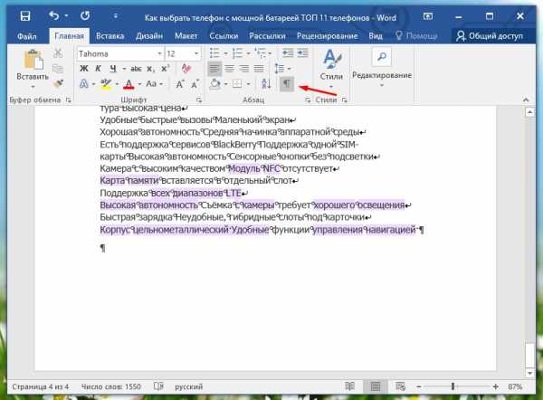 - Пустой лист исчезнет и теперь вы можете снова кликнуть на кнопку отображающую скрытые символы, чтобы текст выглядел более прилично.