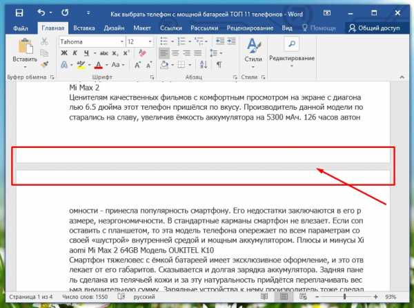 - Запустите свой документ Word формата. Прокрутите страницу до первого разрыва между страницами.