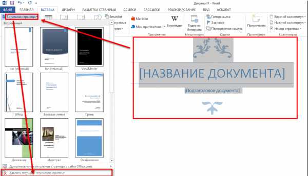 Для Word 2013 задача решается просто – удалить старую титульную страницу можно, установив новую. Замена происходит автоматически.