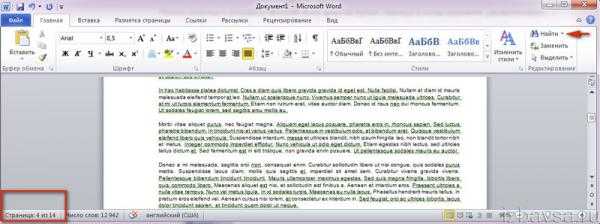От пустых страниц избавляться мы научились, как же быть с теми, где есть какая-то информация: текст, диаграмма или картинка? Удалять можно и непустые страницы, сейчас мы Вас этому научим.Переместите курсор в любую часть страницы, которую желаете поскорее удалить. Возвращаемся на вкладку «Главная», находим справой стороны стрелку с надписью «Выделить», кликаем по ней и в выпадающем меню выбираем «Выделить всё».