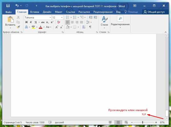 Переходим в конец документа и на самой нижней части листа кликаем мышкой