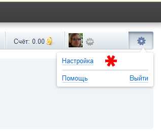 - В верхнем правом углу аккаунта есть иконка (графический элемент) в форме шестеренки. При нажатии появляется несколько пунктов, из них выбирается строка «Настройки».