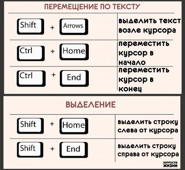 Клавиши для выделения текста