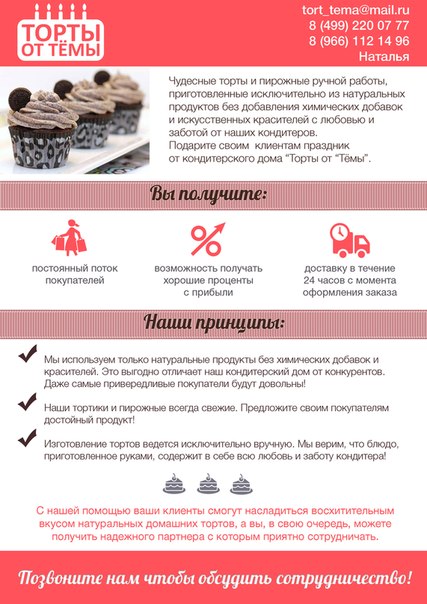 А за ним – более подробный рассказ об ассортименте и стоимости предлагаемых товаров. Эту информацию лучше всего отразить в таблице. Если же речь идет об услугах, отдельную графу таблицы посвятите результатам, которые будут достигнуты с Вашей помощью.