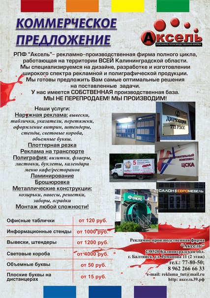 Коммерческое предложение – основной инструмент продажи. Именно c коммерческого предложения начинается знакомство потенциального клиента с Вашим продуктом или услугой. И от того, насколько правильно составлено и доставлено коммерческое предложение, зависит успех всей работы по совершению сделки. Коммерческое предложение отличается от прайс-листа или обычной спецификации на товар своим назначением, которое состоит не столько информировании клиента о предлагаемом товаре или услуге, сколько в том, чтобы побудить его покупке товара или воспользоваться услугой.