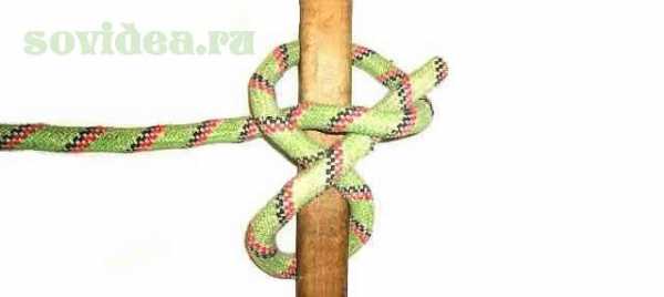 Как делать. Берем край веревки и складываем его буквой «Z». Коротким концом делаем 3–4 оборота вокруг веревки и продеваем его в нижнюю петлю. Затягиваем веревку с помощью верхней, рабочей петли.