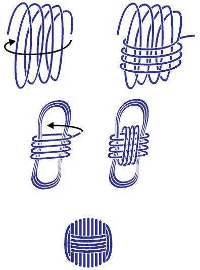 - Образовать открытую петлю на веревке: придать ей форму буквы «s» и приступить к формированию витков, располагаемых максимально плотно по отношению друг к другу.